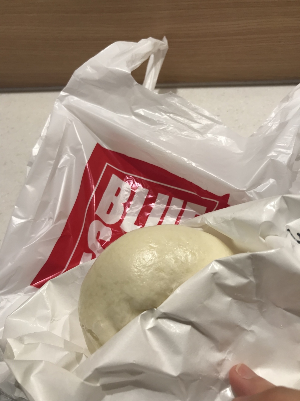 長崎空港の二階フロアーにあるブルースカイです。長崎らしく、角煮が入った角煮入り肉まんが買えます。レンジで温めた状態で提供されます。一つ230円になります。一口サイズにカットされた角煮がゴロゴロ入ってます。
