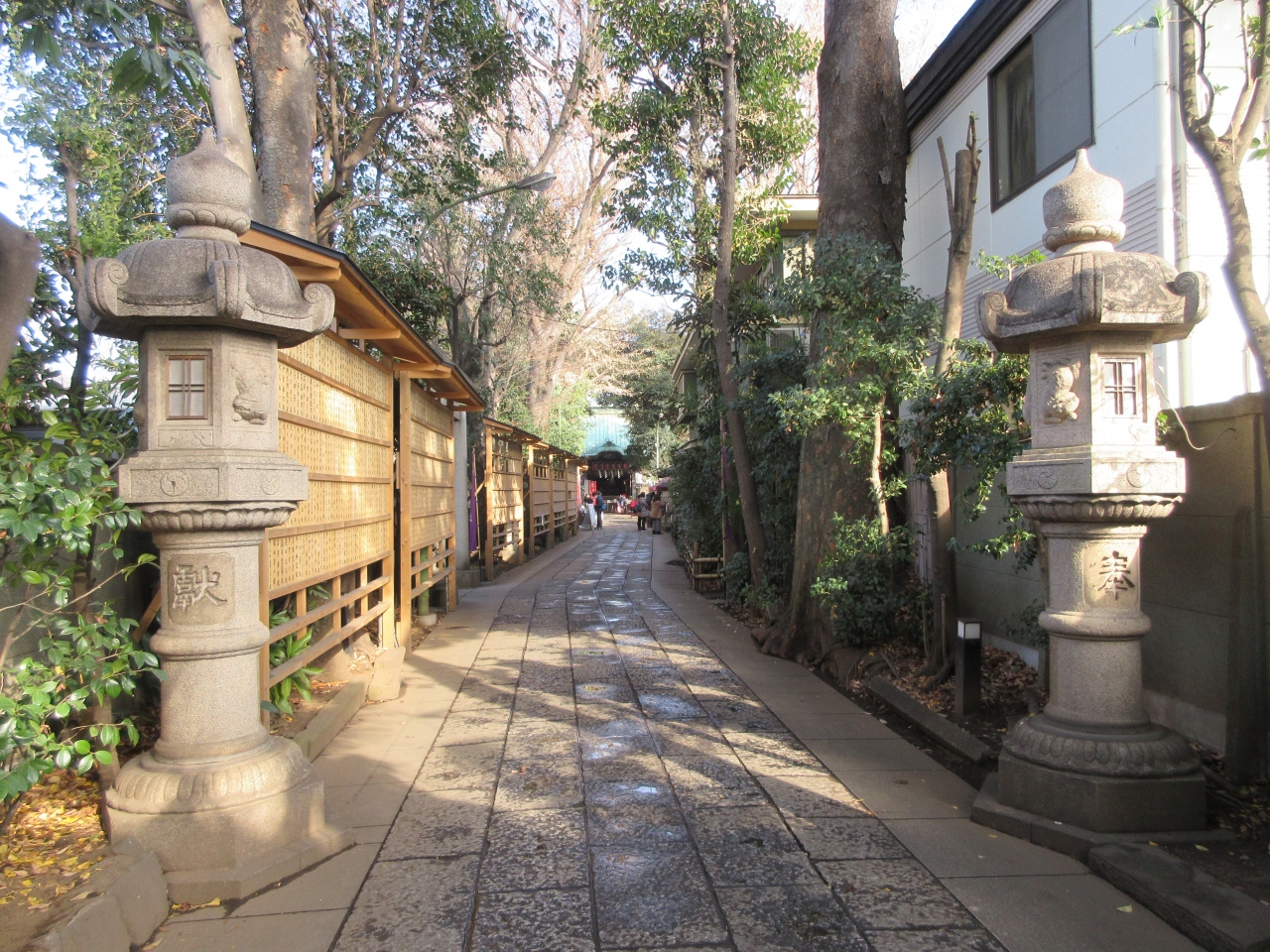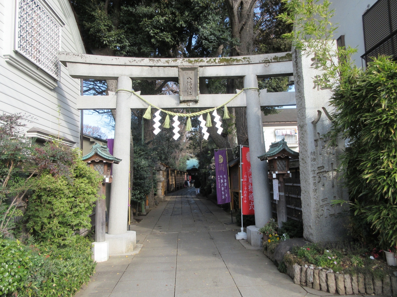 戸越の総鎮守として戸越を見守ってきた、500年ほどの歴史がある神社です。長い参道の先にある社殿は木造銅板造りで、中には奉納された大きな絵馬がいくつも飾られています。社殿前には品川区内で最古の狛犬が建っています。神社が所有している大きな神輿も見ることができました。境内には神社の草庵だった、願いがすぐにかなうといわれた成就庵を詠んだ石碑も建っています。参拝客のためにお茶の用意やカステラが置かれたり、携帯のフリーチャージャーが使えたり、寒さ除けの石油ストーブがついていたり、参拝客のことを考えた工夫が見られる神社です。そのためというわけではないと思いますが、御朱印をもらう人や参拝客の姿が多く見られたのが印象的でした。氏子の数が多く、地元の人から篤く信仰されている神社だと思いました。