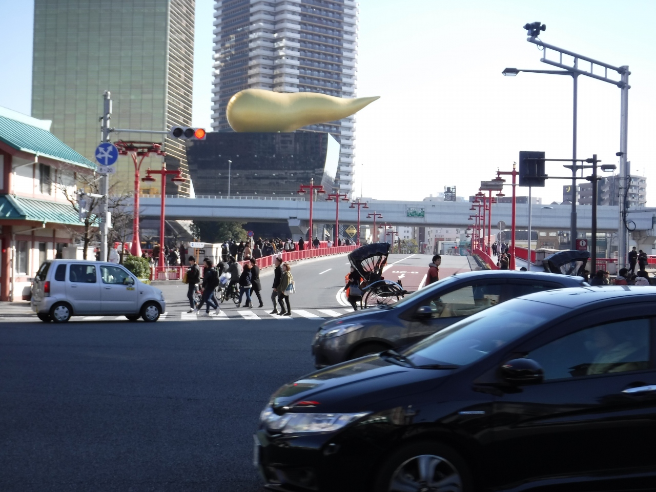 今年のお正月に、初もうでで浅草に行った折、この吾妻橋の近くを歩きました。