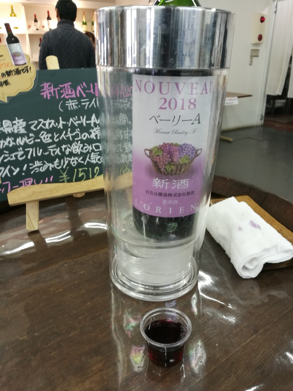 甲州街道の旧道を歩いている時に見つけて立ち寄りました。ワイナリー併設のショップで赤、白2種類の新酒とブドウジュースの試飲が無料で出来ました。同じ敷地内のワイングラス工房とワイナリーがあって内部の見学もできるようです。