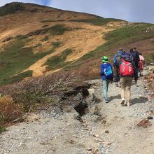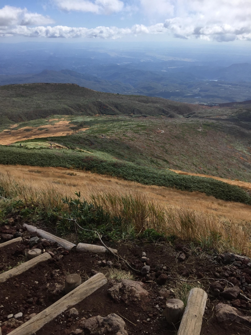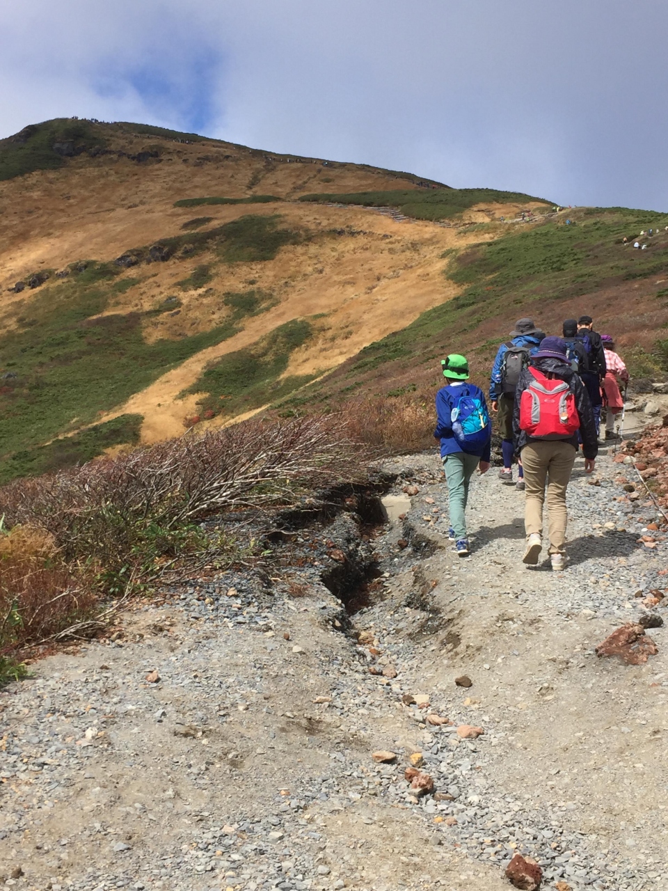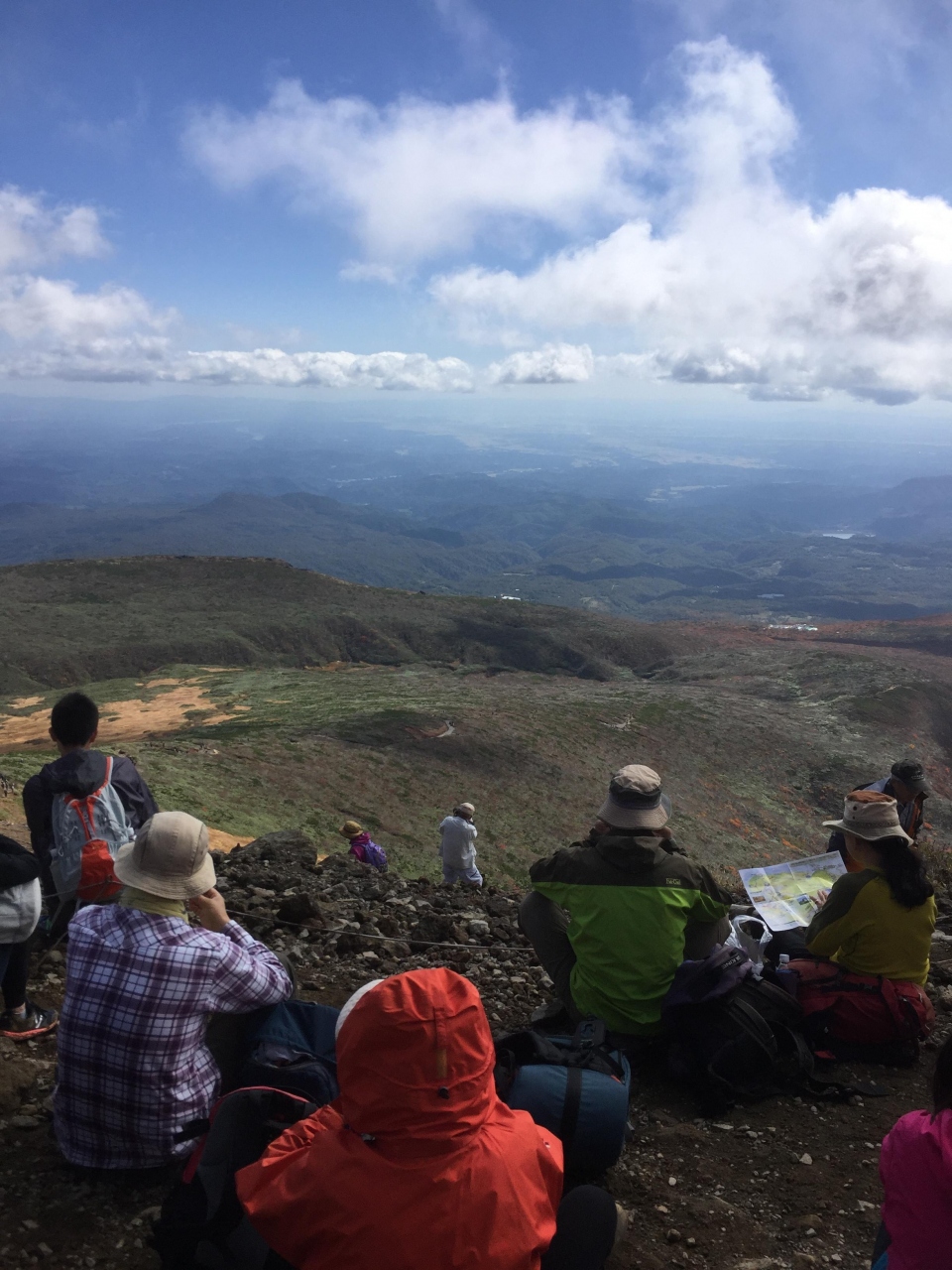 6月は須川温泉登山口から登ったので、秋はイワカガミ平から登りました。栗駒レストハウスでは、模擬店が出たりして繁盛してました。登山はこちら側の方が道も広く、なだらかで登りやすかったです。
