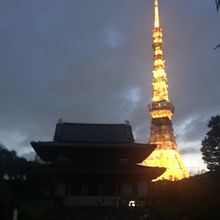 本堂の後ろ側に東京タワーがあり、個人的には日が落ちてからの増上寺境内から見る、ライトアップの東京タワーと本堂はベストな光景かと思います。
