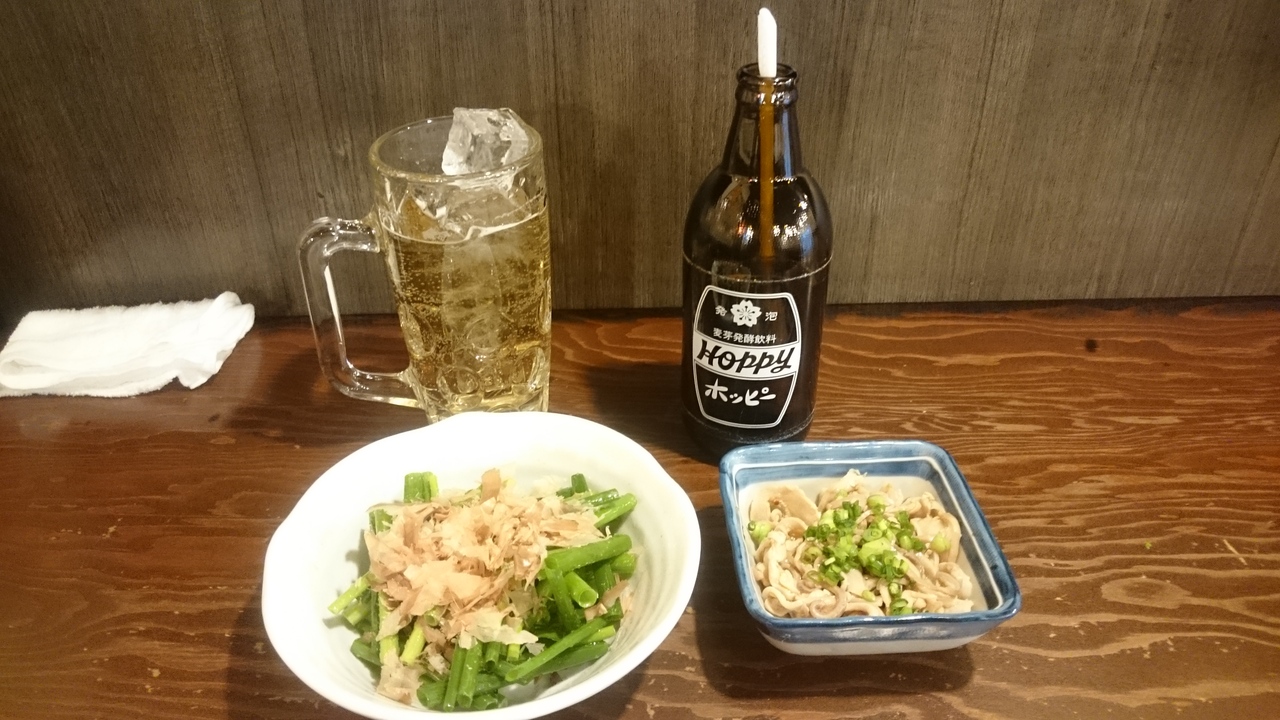 久しぶりに「紅とん池袋ビックリガード」に行きました。まずは「ホッピーセット」とすぐ出る「がつポン」「ねぎ盛り」を注文!追加で「ねぎまみれ軟骨」あとはホッピーでぐいぐい。ホッピーの中は専用ビンで提供、自分好みで調整、飲んだ分だけ清算。