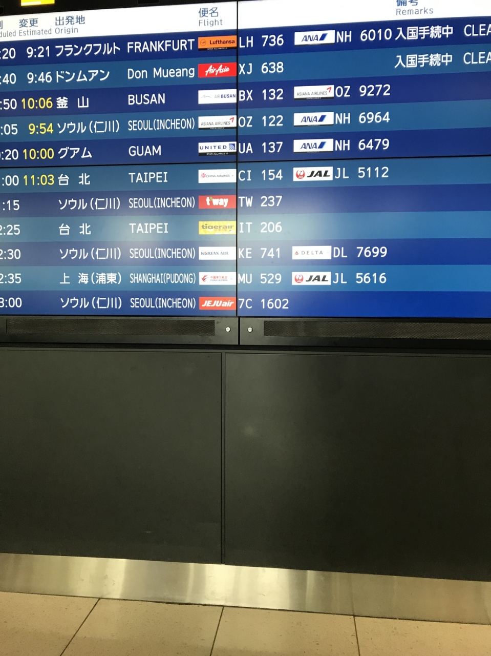 国際線の迎えも迷わずできます。