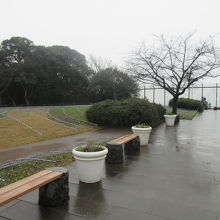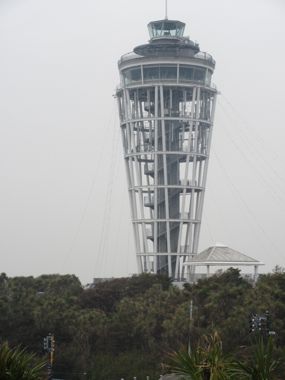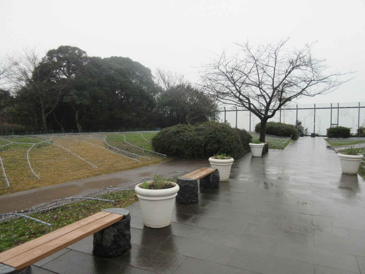 江ノ島の頂上付近にあたります。12月の雨の日だったので、花も少なく眺望もイマイチだった。展望台のようになっているので、本来なら海を見渡すことができ、花々もきれいだと思います。春に来ていれば印象は異なったと思います。