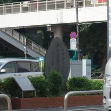 駅前のロータリー植え込みに置かれた記念碑を見学