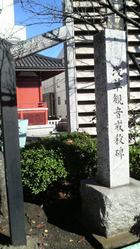 都営地下鉄・浅草駅から歩いて数分、駒形堂の端に石柱が立っています。