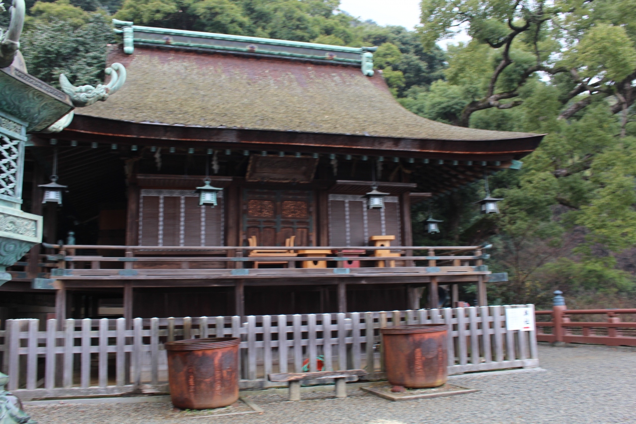 香川県の観光スポット、琴平にある金刀比羅宮のなかにある見所スポットです。御本宮の向かって右にあるのが、神饌殿です。祭典や毎朝夕に神前に献ずる神饌を調進する所です。神饌殿と本宮拝殿は北渡殿でつながっています。入母屋造の檜皮葺でこちらも当時の建築技術の高さと美しさは目を見張るものがありました