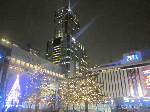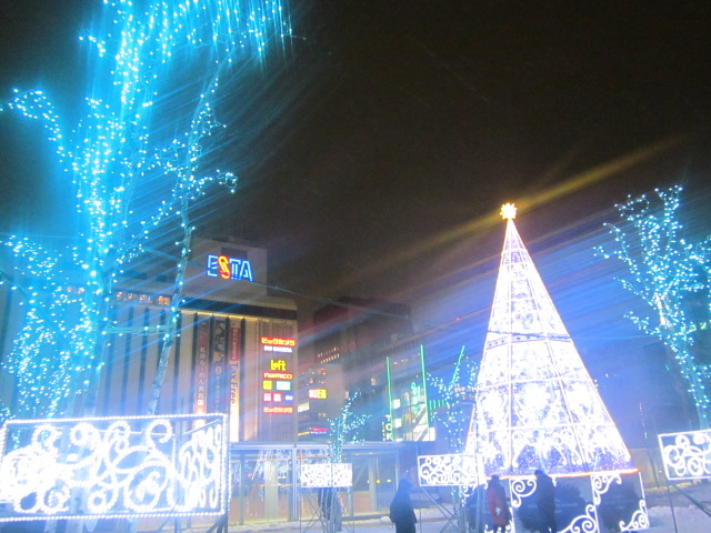 ここから駅前通りを経て、大通公園に至り、そのままホワイトイルミネーションへ、という流れが王道だとは思いますが、肝心の大通公園に関しては、2月上旬の雪まつり準備のため、ホワイトイルミネーションは早々に終わってしまいますので、1月中旬以降に札幌の電飾を楽しみたい、という方はまずここをご覧になると良いです。