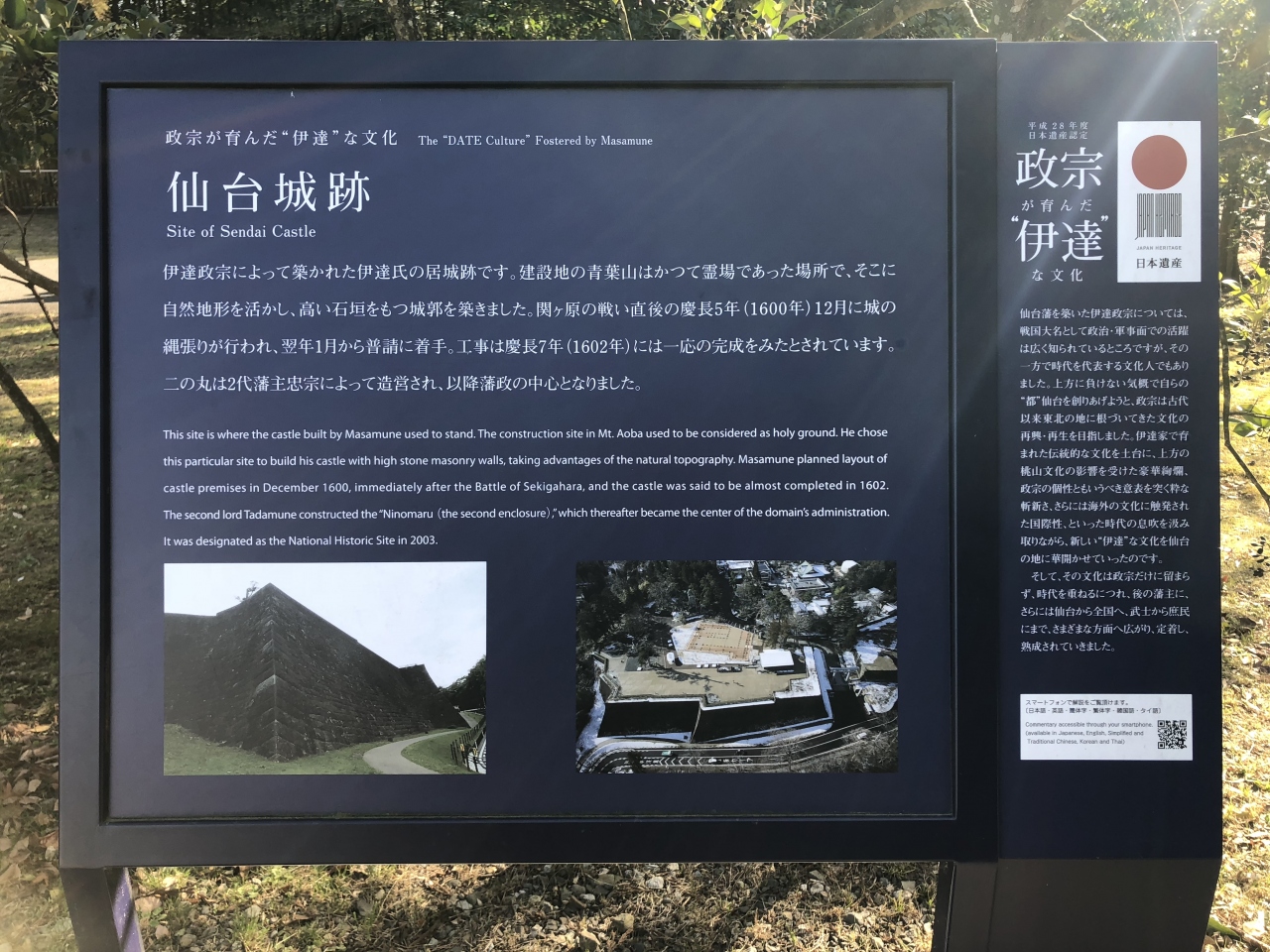 日本100名城の71ヶ所目に仙台市の青葉山に築かれた仙台城を訪れた。仙台駅から地下鉄東西線の乗って国際センター駅からかなりの坂道を登ること約15分、結構な運動である。