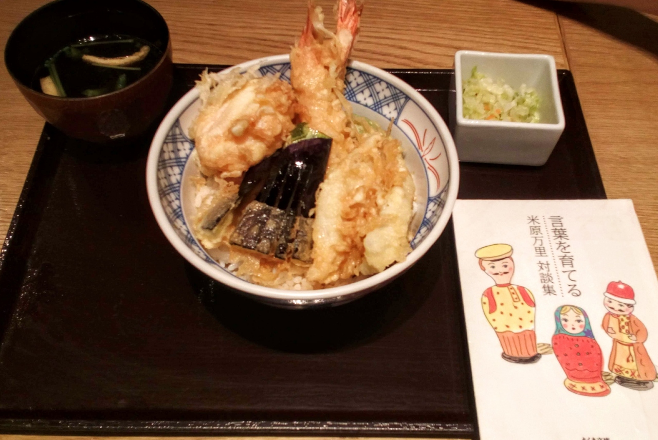 池袋駅西口地下にある小さなお蕎麦屋さんです。お店のキャラクターのカエル、ソバキチ名物の夜鳴き蕎麦など、とぼけたネーミングに惹かれて入店してみました。ランチタイムには、謎の夜鳴き蕎麦はなく、茗荷ぶっかけ蕎麦、ランチタイム限定のソバキチ天丼をいただきました。蕎麦はニ八蕎麦、天丼の具は、海老、キス、なす、しし唐、半熟卵でした。