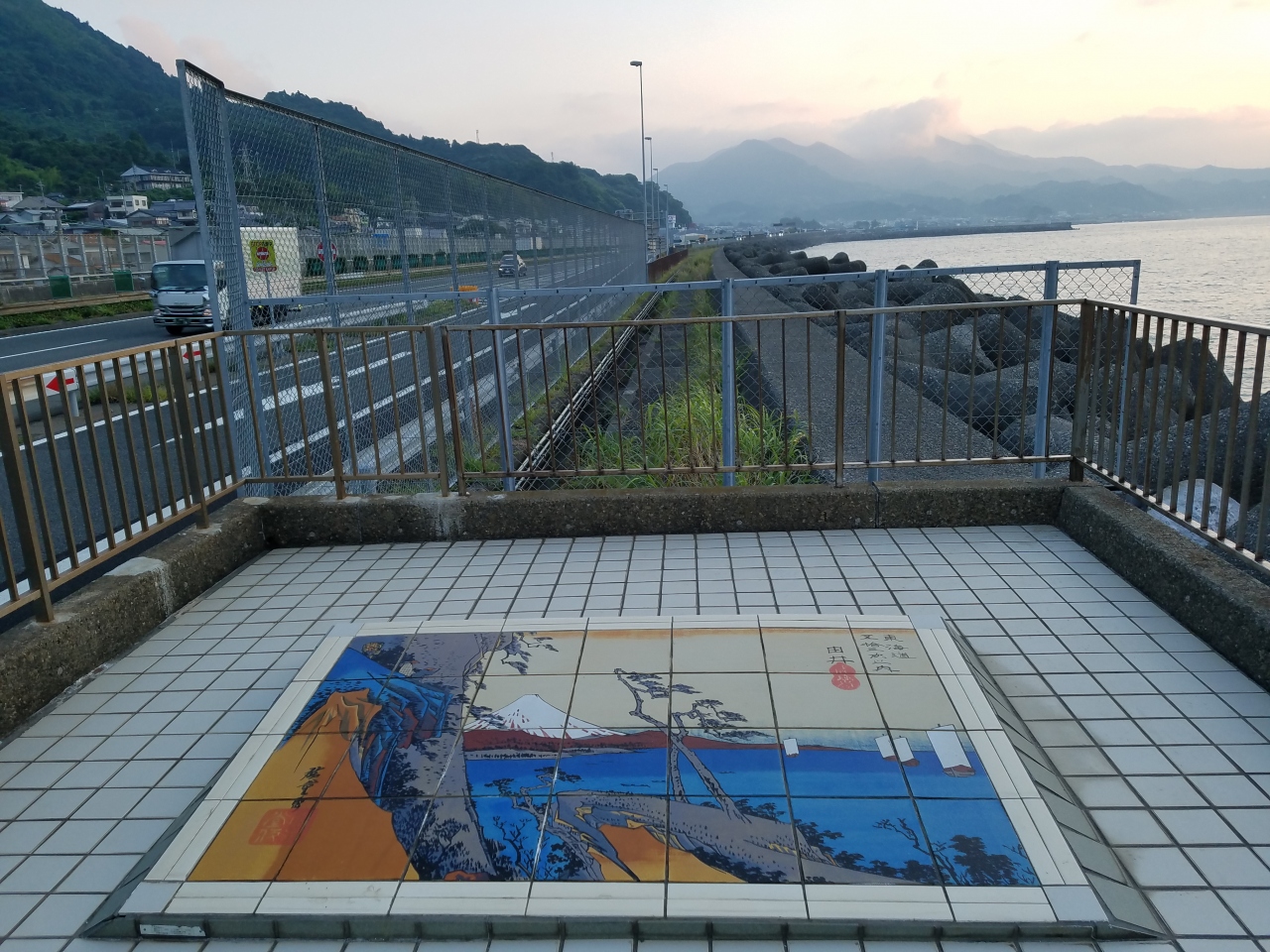 由比PAは、東名高速道路下り線にあります。本線と海岸に挟まれた細長いスペースのパーキングエリアで、設備はトイレと自動販売機がある程度ですが、なんといっても景色の良さが素晴らしいです。早朝、駿河湾の水平線に朝陽が昇り、雲の合間から霊峰富士の稜線を望むことができ、ドライブの疲れを忘れることができました。