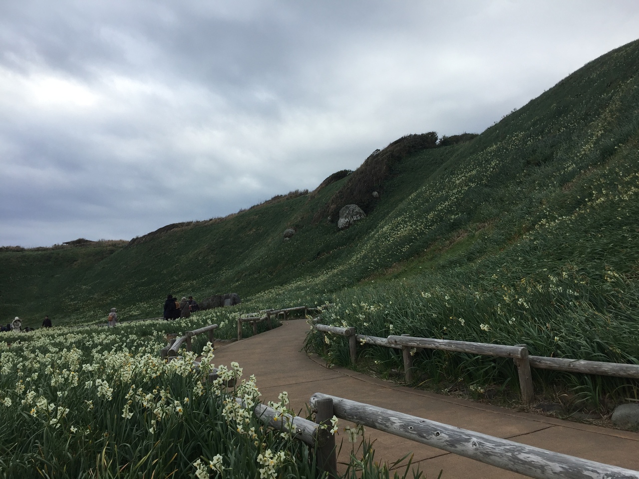 肝心の水仙もエリアにより早咲き遅咲きがあり 早咲きの広々斜面エリアは すっかり終わっており 一面の満開を見るのは元々難しい所なのだ。