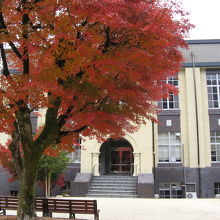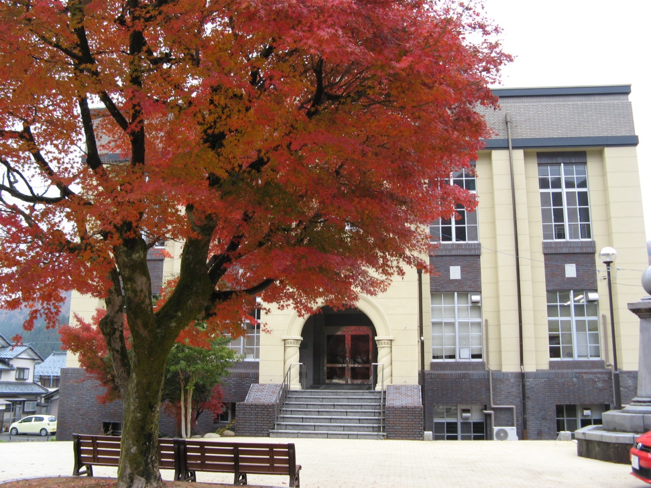 木炭業や運送業などで成功を収め、県議も務めた地元出身の田中和吉氏が私財を投じて昭和初期に建設したものだそうです。鉄筋コンクリート3階建の洋風建築で、1階が地下のような扱いで2階部に玄関ポーチを配する特異な構成となっていて、一見すると2階建てのような印象を受けます。和風の民家や商家が連なる今庄宿において、洋風の建物は異質で昭和初期のレトロな感じがとても素敵でした。