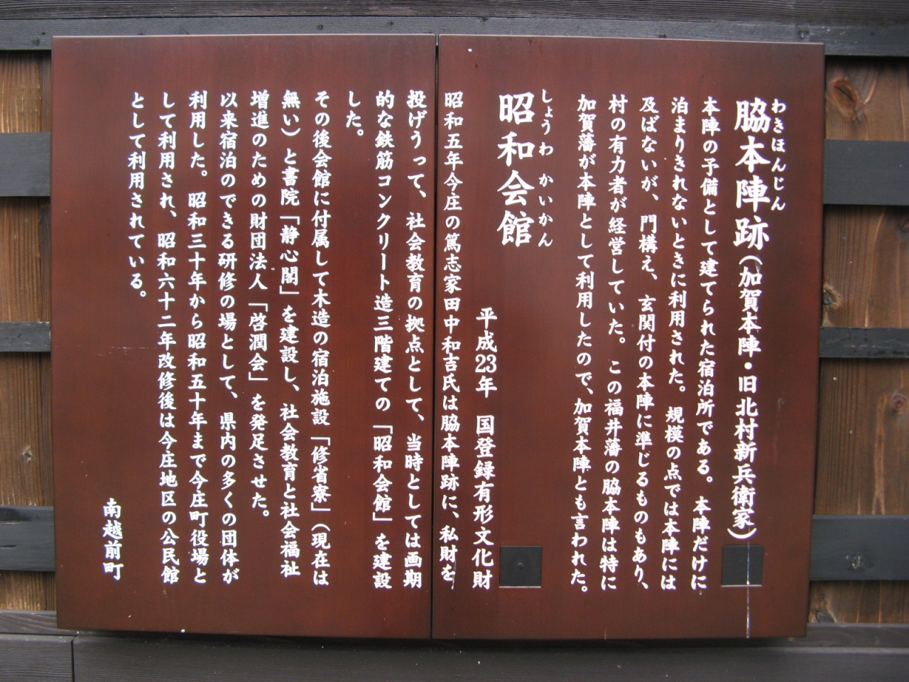 長さが1㎞ほどの今庄宿の中ほど、脇本陣の跡地にあります。
