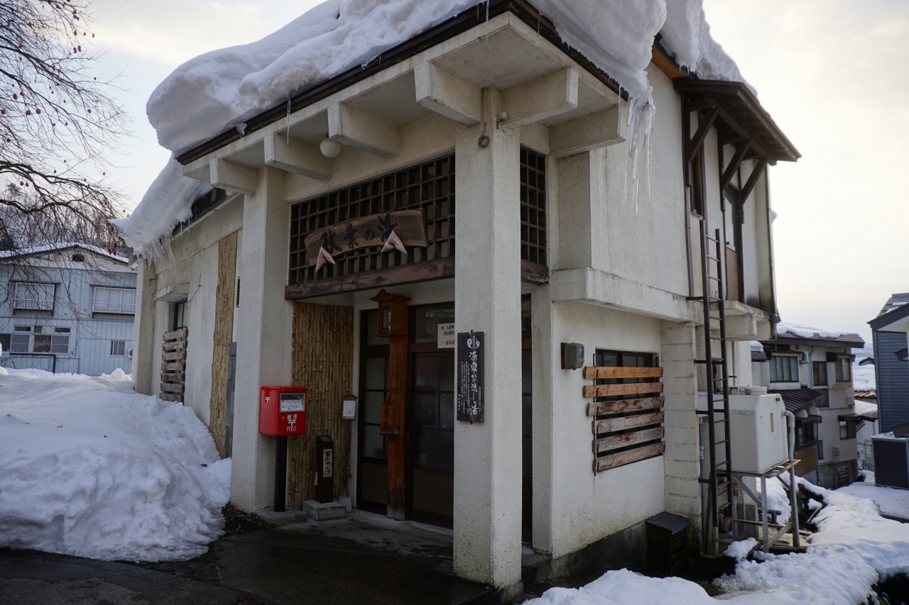 秋葉の湯は、十王堂の湯からおぼろ月夜の館の方に向かって上って行ったところ。入口を入ると少しスペースがあって、そこから男湯、女湯の入口が改めてある構造。外からいきなり入ると風呂という構造が多い外湯にあっては少しゆったり感があるでしょう。脱衣場も風呂からは分かれています。しかし、その余裕のある分、人が多いような。時間帯もあったかもしれませんが、混み合っていてあまり落ち着きませんでした。