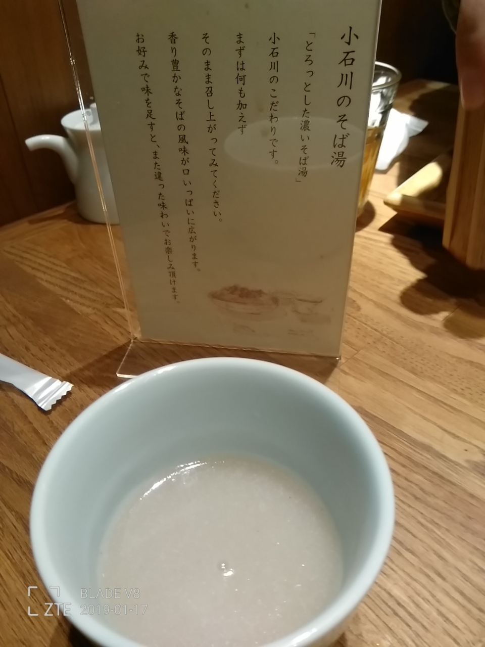 足りないかと思っていたが、食後に出てきた蕎麦湯が、ほとんど蕎麦がきと蕎麦湯のMIXっぽく濃厚だったので、おなかもおさまりました。蕎麦湯があったのでポイントアップです。