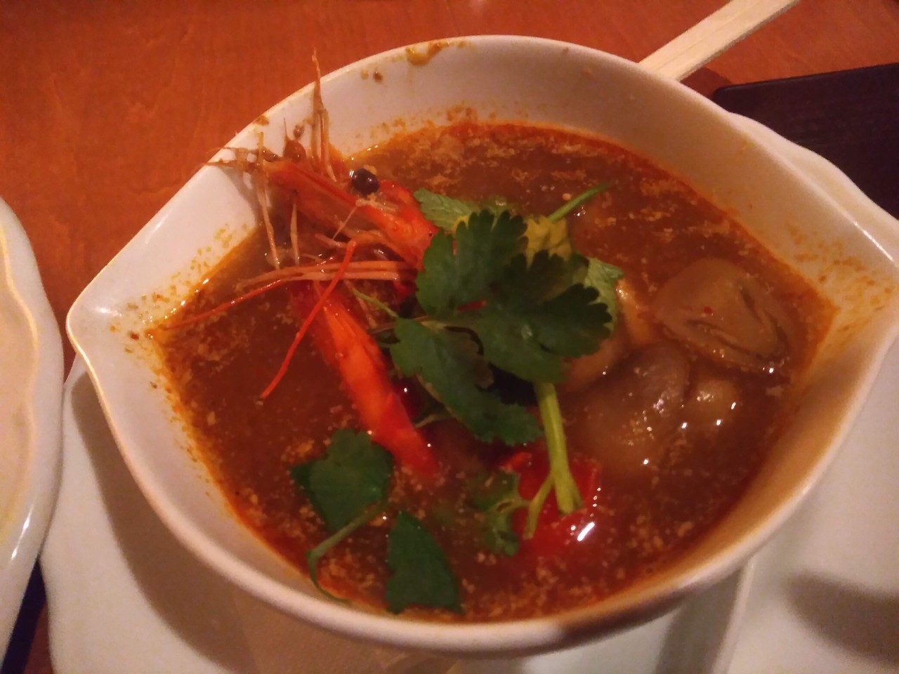 5つ星ホテルに勤めていたタイ料理のシェフが作っているとの看板で、海老チャーハンとトムヤムクンを頼みました。