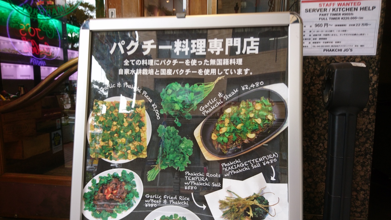 横浜中華街に近い場所にあるお店です。パクチー専門店。パクチーは好き嫌いがはっきりします。私は好きです。あの香りがクセになります。しかし、相方は「カメムシと同じ匂いがする」と失礼千万なことを言いますが、私は好きです。パクチー春巻き、パクチーピザとパクチー好きにはたまりません。おいしいパクチー創作料理で大満足です。