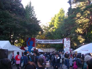 中央線の国立駅から続く学園通りの両側には一橋大学のキャンパスがあり、秋に行われる天下祭の続きで学園祭の会場に入れます。西側のキャンパスに入ると留学生がやっているエジプトめし、タイ料理のパッタイ、ベトナム風お好み焼きや台湾ソーセージなど気になる料理が並んでいました。