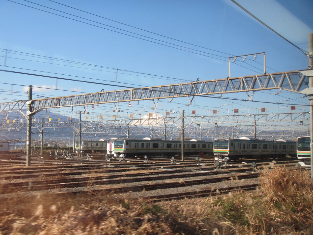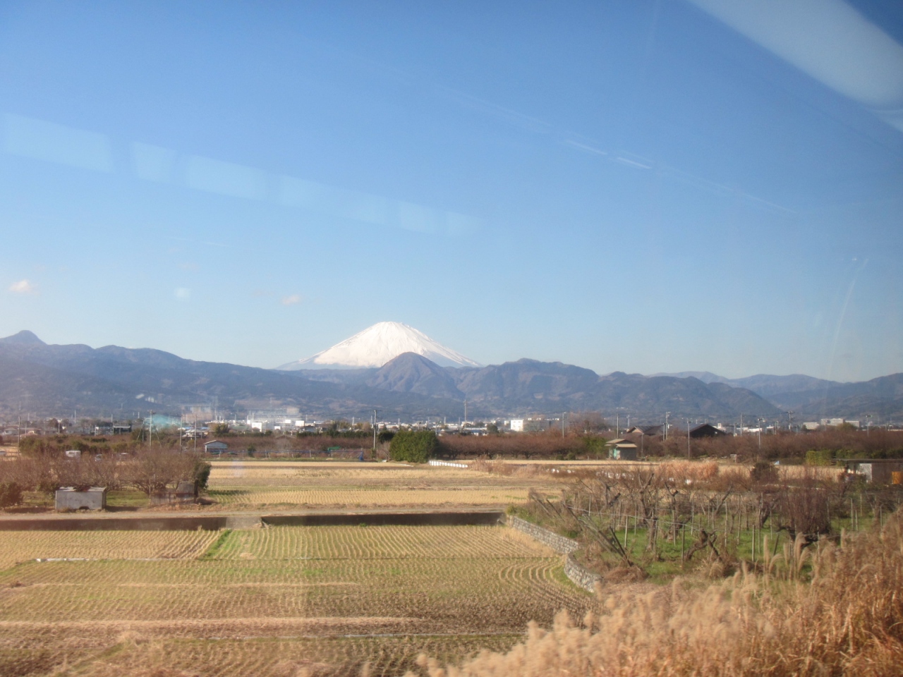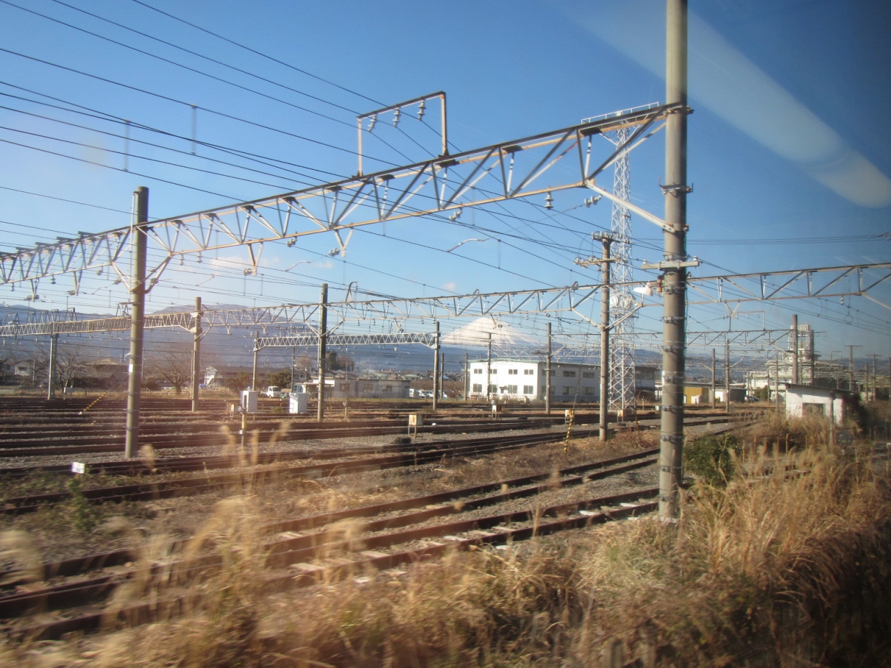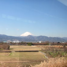 神奈川県側の国府津を出発してからすぐ富士山が見え、東海道線と分岐する高架からよく見えますが、静岡県側から見た方が大きく迫力ある富士山が見えます。