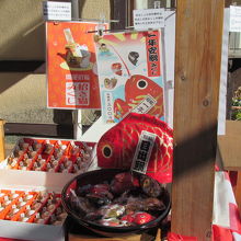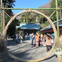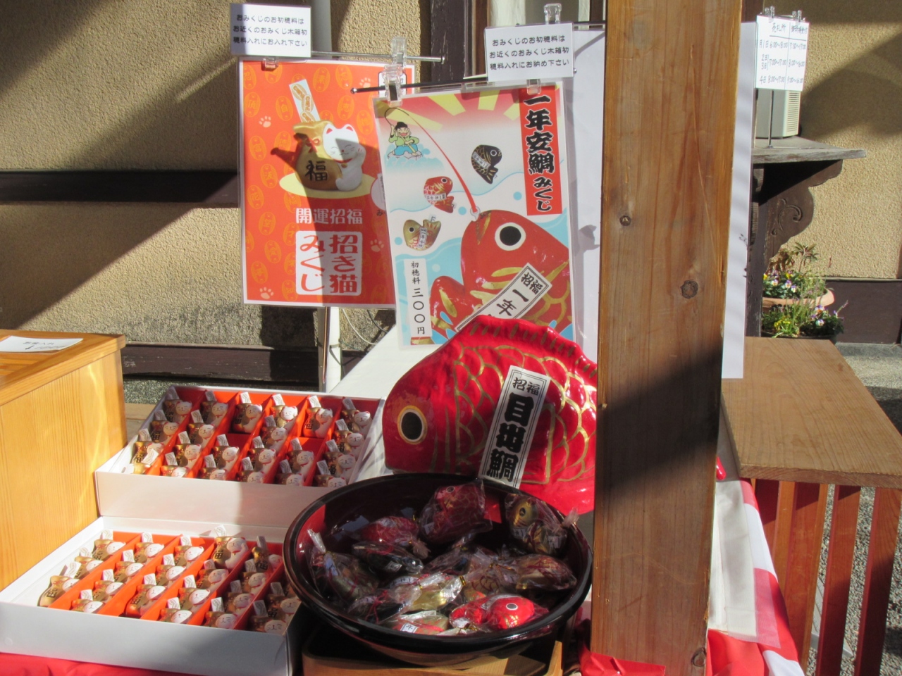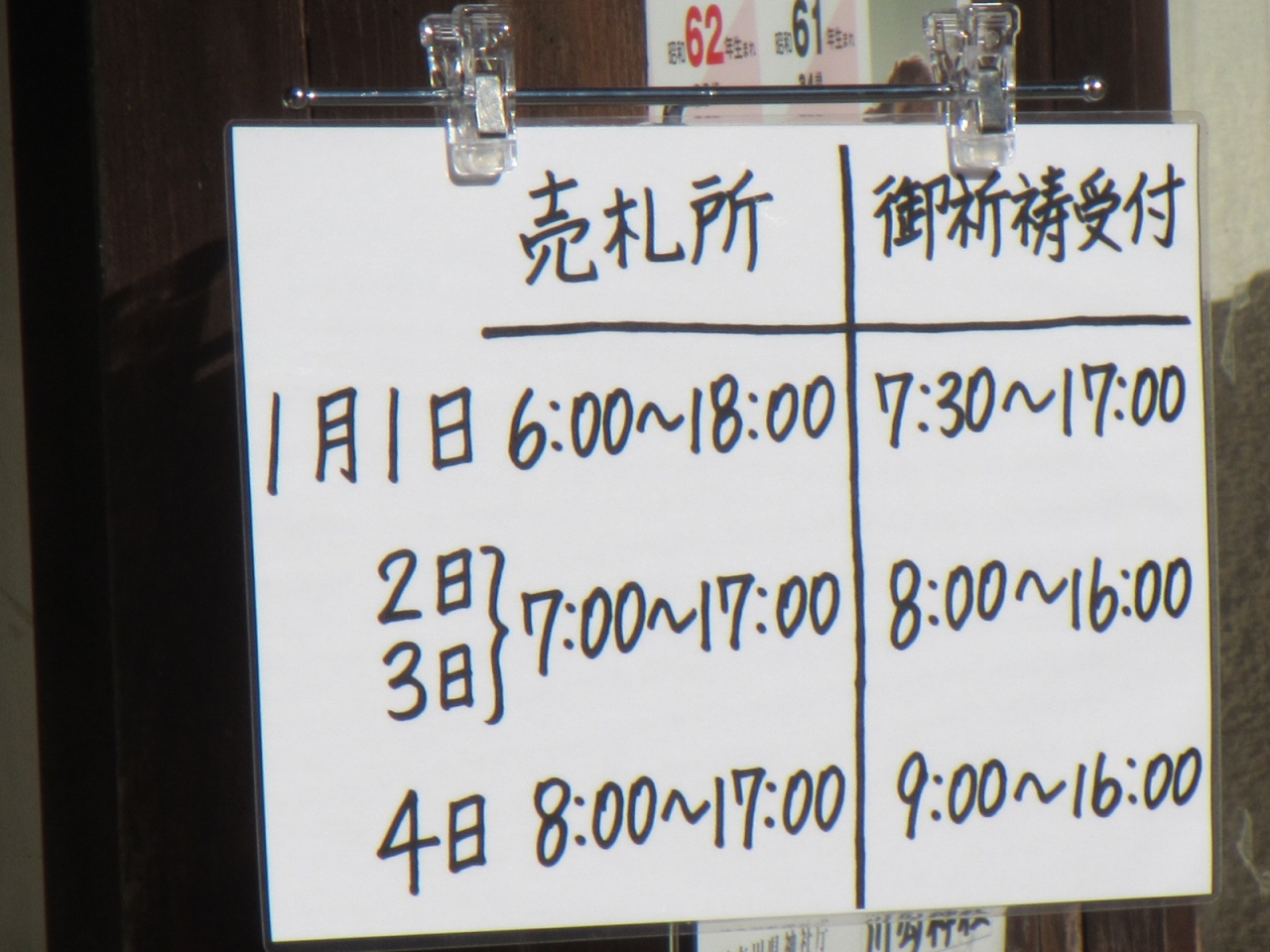 お正月は初詣客で賑わっていて、破魔矢やお守り、おみくじなどの授与品を巫女さんが販売していました。