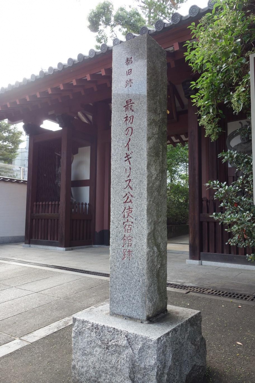 高輪エリアを散策中、東禅寺へ立ち寄った際に山門の前にこちらの石碑が有るのを見学しました。東禅寺はイギリス公使の宿泊施設が最初にできた場所だそうで、イギリス大使のオールコックが滞在したことでも有名です。
