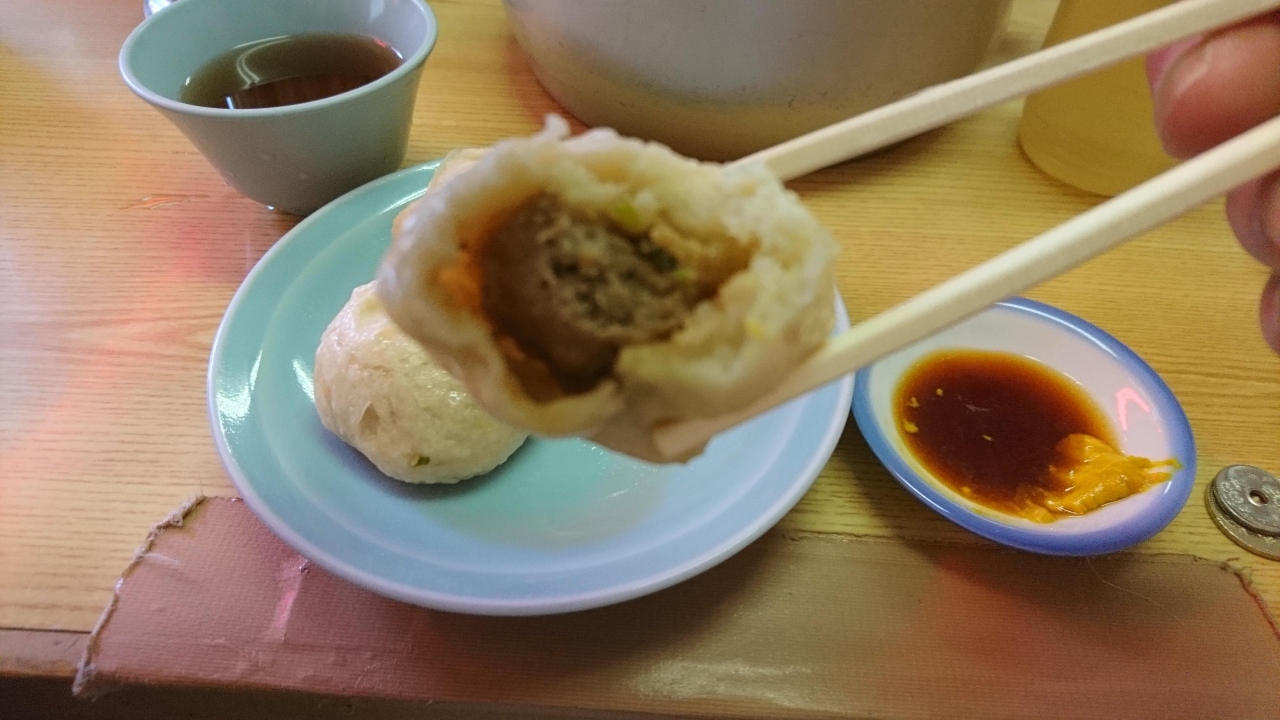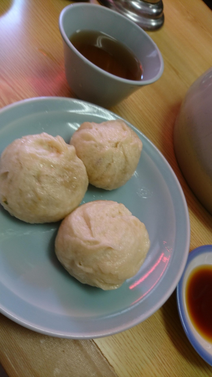 神戸の中華街に行ったお目当ての店がここ老祥記の豚まんをいただくことです。人気店なので絶えず行列ができています。しかし、絶対食べたい豚まん。食べないと後悔するので並ぶことは苦になりませんでした。客の回転は速いので30分ほどで店内に。豚まんの数を聞かれ3個にとどめておきました。いろいろ食べ歩きたいですからね。すぐに豚まんが運ばれてきました。小さな豚まんですが、あんがいっぱいで噛むと肉汁があふれてきます。とても熱いので注意が必要ですが、そんなことよりおいしい豚まん。サービスの冷たいお茶とともにいただきました。噂以上のおいしさでした。また、中華街に行っても外せないお店です。