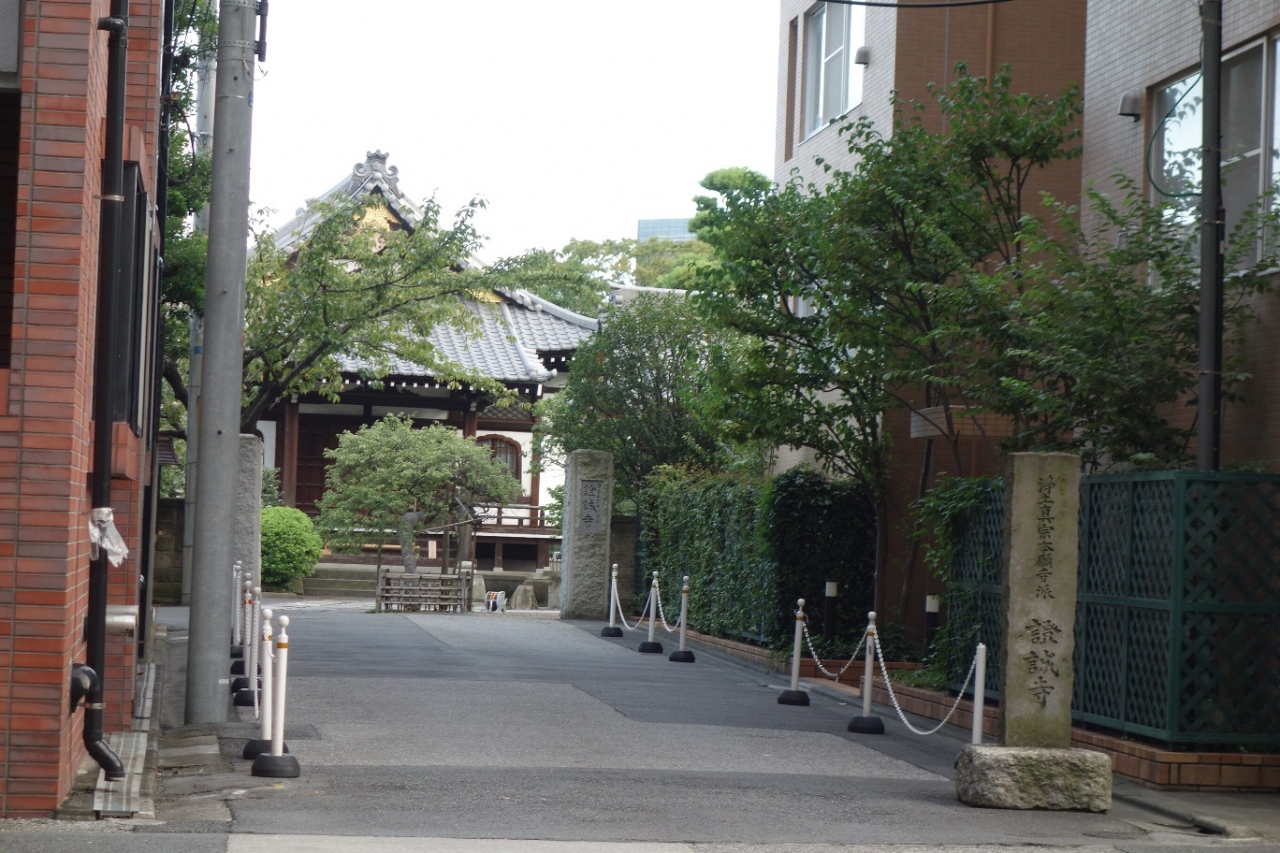 高輪エリアを散策中にこちらのお寺へ立ち寄りました。桜田通りから天神坂の急な坂道を上がっていった先にこちらの寺院の山門が有りました。境内には立派な屋根の本堂が有り、マンションや学校などのビルが並ぶ地域で静かな空間を作っていました。