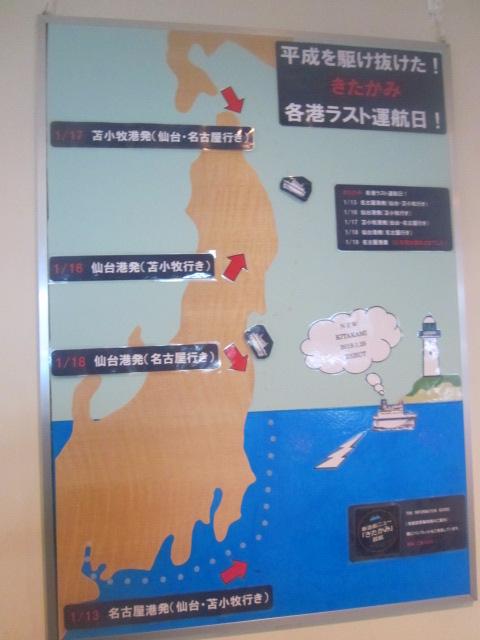 因みに、「きたかみ」としては、新造船が同年1月25日から就航します(しました)ので、これからも引き続き「きたかみ」を応援していきたいとは思っていますが、この船では、太平洋フェリー名物のショーも楽しめなくなってしまうそうですし、二等の雑魚寝部屋もなくなってしまうとあっては、これからは逆に「きそ」を応援していかないといけないのかな、と、ちょっと卑屈に考えたりしてしまっている自分がいます…。