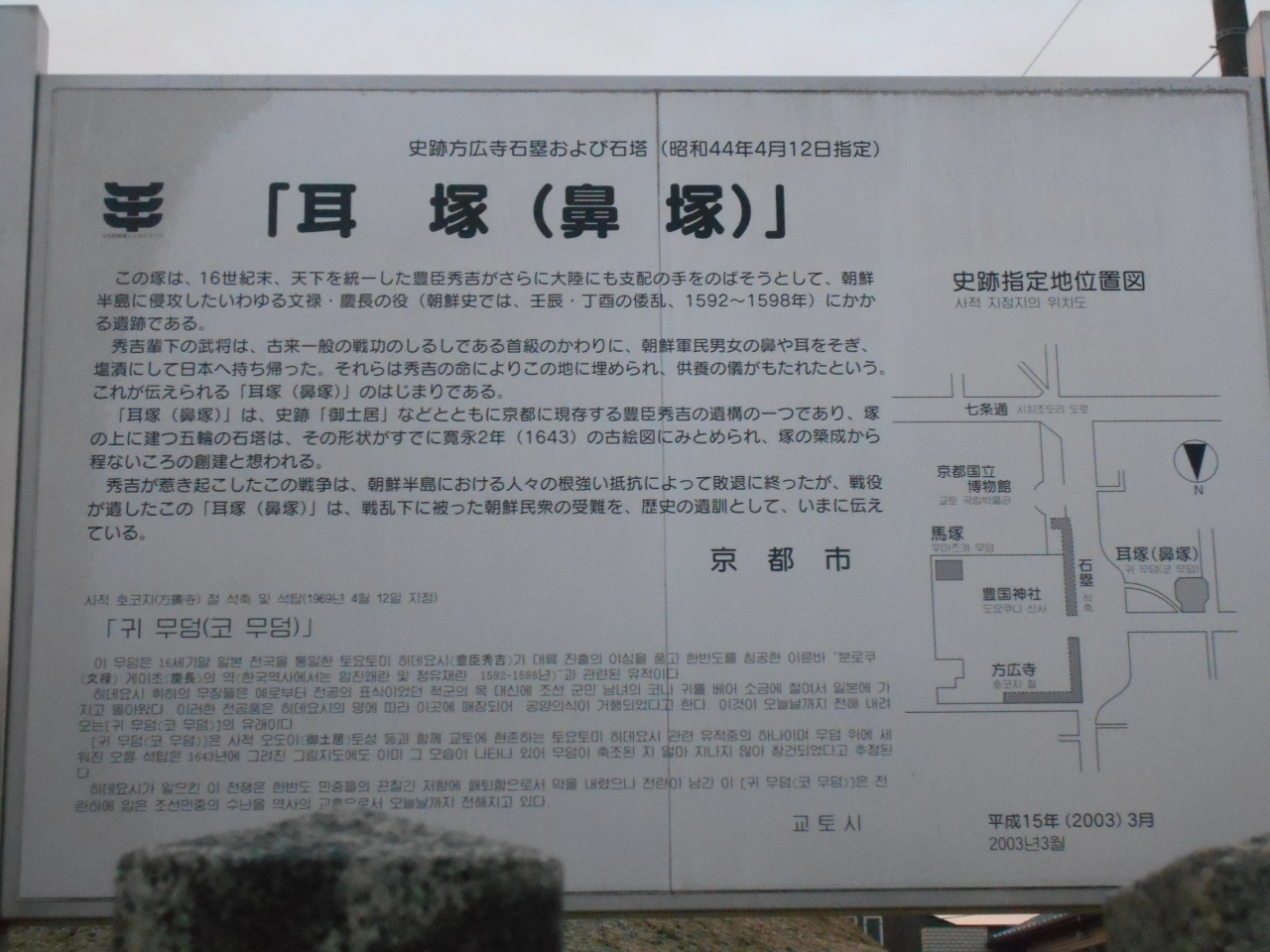 豊臣秀吉が朝鮮に出兵し、配下の武将が敵の「首」の代わり持ち帰ったとそいだ「鼻や耳」を供養するためにつくられたという。