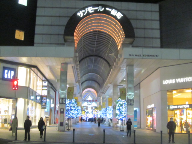 仙台を代表する伝統あるアーケード街ですが、今回は1月の夜間に歩いてみました。すると青葉通りを境にして北側のイルミネーションがとても美しくて、目を奪われました。ただ、通り全体のデザインとしては、ちょっと単調な印象で、もう少しバリエーションがあっても良いかなと思いました。