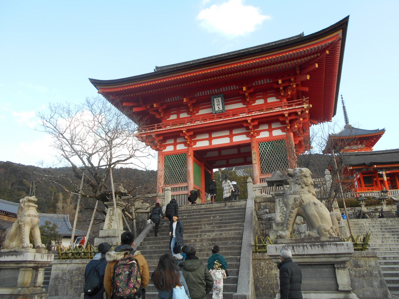 バックになる三重塔が塗りたてのような朱塗りで輝いているのに比べ、仁王門は塗りたてではないところに、歴史を感じる。