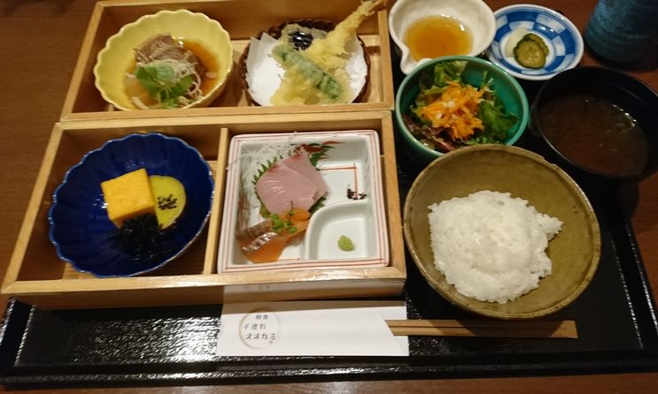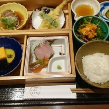 東武宇都宮線南宇都宮駅から徒歩で5分位の場所にある和食店です。ランチタイムに伺いましたが予約で埋まっていて、12時半までの時間限定で入ることができました。案内された席は半個室で落ち着く席でした。それほど広くないので予約が必要でした。「松花堂御膳」をいただきました。天ぷら、お刺身、豚の角煮など色々なものが少しずつ美味しく頂きました。プラス料金でデザート付にできましたが、今回はゆっくりとできないのでやめにしました。