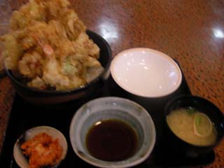 なんぽろ温泉に入った後、ロビーでしばらく休憩するとお昼時で、レストラン味心に行ってみると、なんぽろ温泉名物のキャベツ天丼があり、食券を買って座敷席に着きます。レストラン内は、テーブル席と座敷席があり、地元のお年寄りや子供連れの家族がいて、山盛りのキャベツ天丼がやってきました。