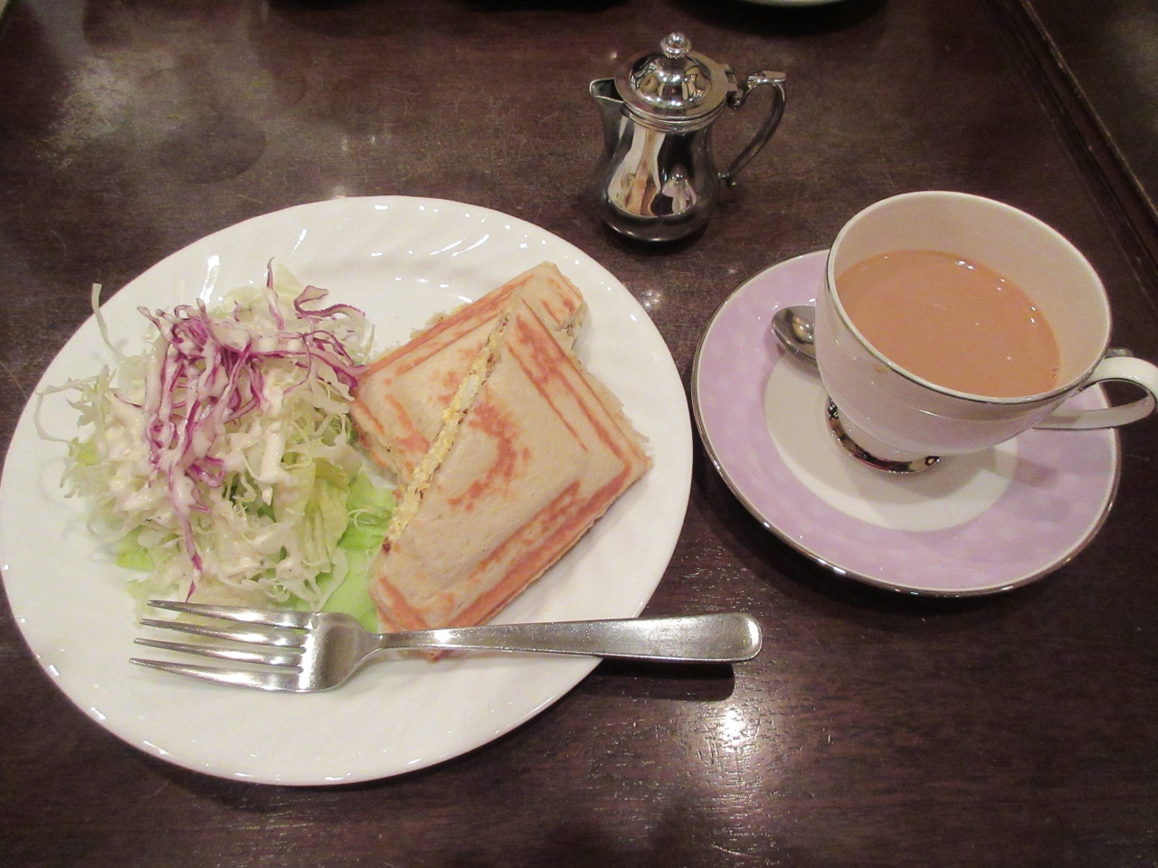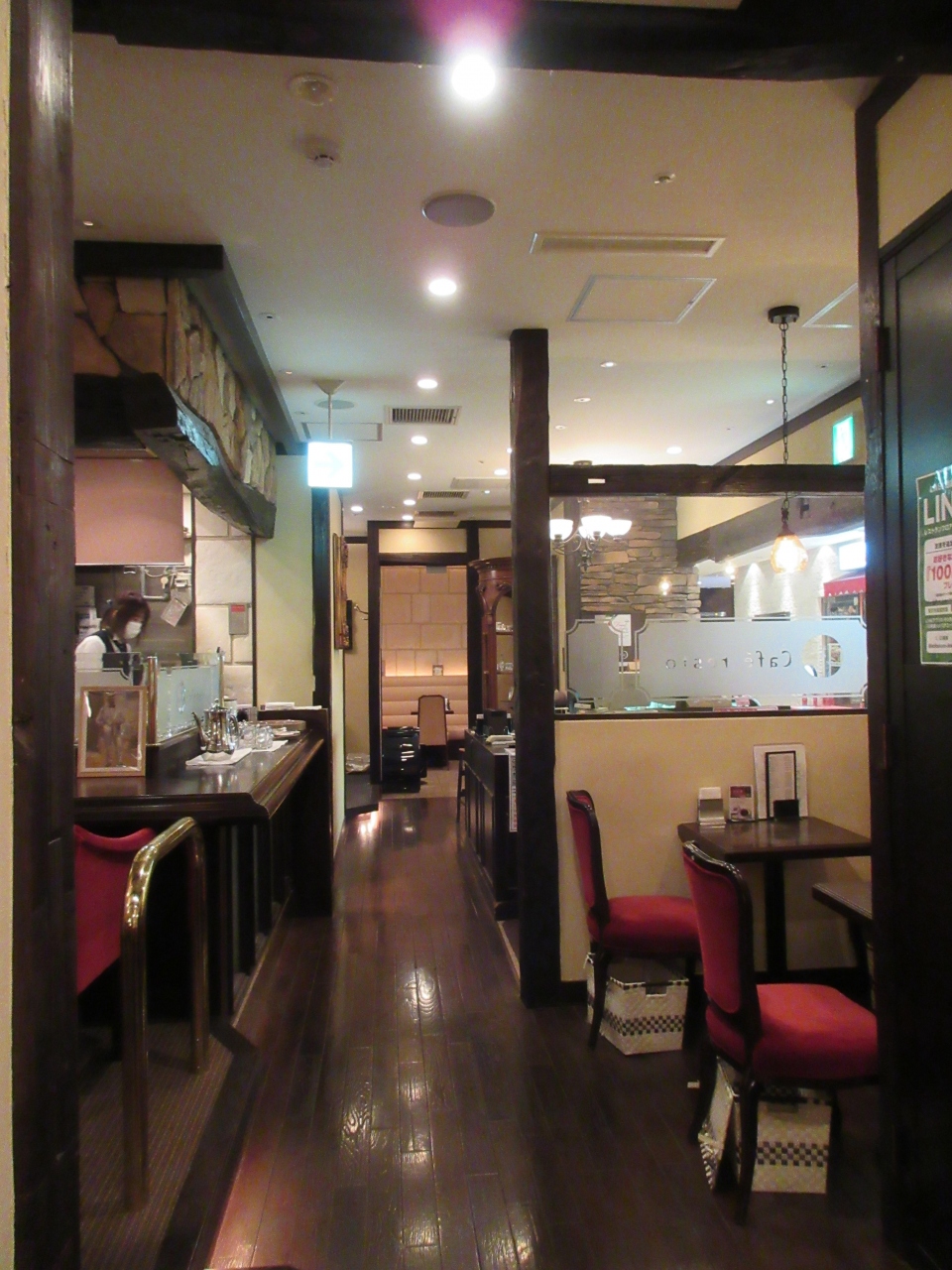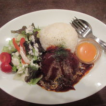 LABI1日本総本店7階にある静かなカフェです。コーヒーと紅茶にこだわりがあり、種類が豊富でした。12時前でしたが、昼食で利用しました。1000円ランチセットのデミグラスハンバーグプレートとタマゴサラダのホットサンドを注文しました。まろやかなデミグラスソースと熱々の濃厚チーズソースが柔らかいハンバーグに合いました。見た目ご飯の量が少なく感じましたが、固めてあったので男性でも足りる量でした。粒マスタードが塗ってあるパンでタマゴをはさんだホットサンドは軽めの量でした。家電量販店内の音量から逃れて一休みしたい時や静かで落ち着いた雰囲気の店内でゆっくりコーヒーを飲みたい時におすすめです。