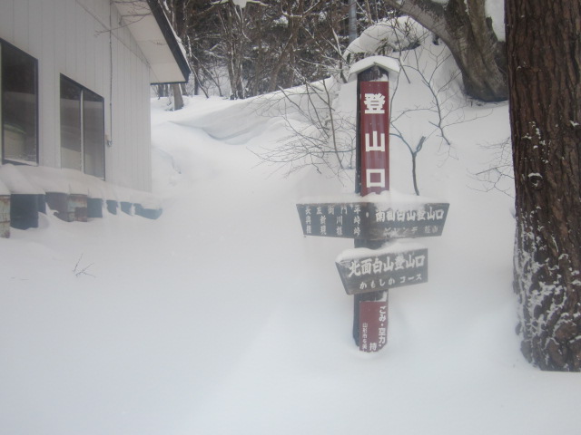 乗られた方が2名いましたがスキー板を担がれていましたので、やはりこの辺りは冬は相当雪が深いのが通例のようですので、ツボ足の登山はまず無理です。スキーがない場合は、それ程冷え込みは強くない感じの堅雪でしたので、かんじきを持参されておくと、それなりに歩けるかと思います。