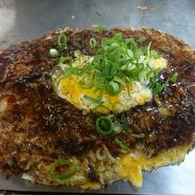 府中にある有名店「平の家」を引き継ぐお店。府中焼きとは広島のお好み焼きと異なり、豚肉バラではなく、ミンチか細きれのお肉を使うので、麺の表面がパリパリしているところが特徴。こちらはミンチ肉を使用。お店は、東福山駅から徒歩10分くらいのところにある。テーブル席とカウンター席、2階に座敷あり。メニューは、関西風お好み焼きと府中焼きとあり(この他、ホルモン炒め、エビマヨ、牛スジぽん、焼き飯がある)ますが、ここはもちろん府中焼き。肉玉とスペシャルがあり、スペシャルはイカとエビが入る。大きさは普通、セミダブル、ダブルとあり、100円ずつ異なる。ここの特徴は、お好み焼きには溶き卵がかかってあり、とろーりとしていて美味。このお掛けでパリパリとふんわりが同時に楽しめます。これはオリジナル。マヨネーズは別売り。また行きたいお店の一つ。