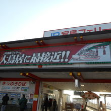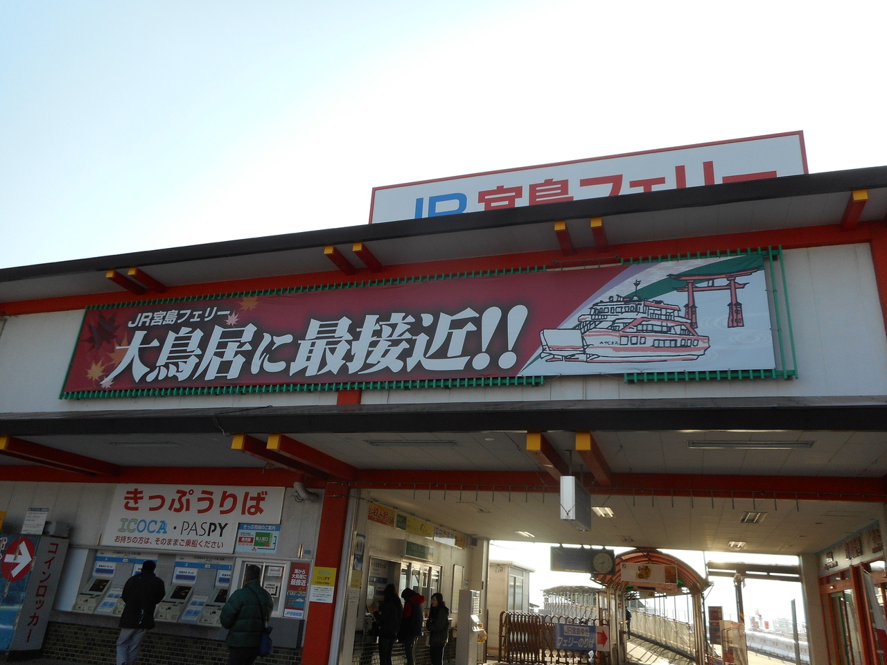 「大鳥居に最接近!!」の謳い文句に誘われ、JR西日本の宮島フェリーを利用しました。松大汽船より少し所要時間はかかりますが、大鳥居のすぐそばを船が通過するので、宮島に到着する前から観光気分が盛り上がりました。交通系ICカードも利用可能です。