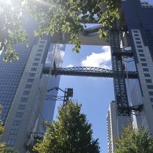特徴的な建物なので、梅田や大阪駅周辺ではわかりやすい新梅田シティ。ウェスティンホテルなども入っているので、観光客でも行くことが多い場所です。館内の案内もわかりやすいです。ただ、徒歩でいくとちょっと距離があります。特に大阪駅前ビル方面からですと20分はかかります。