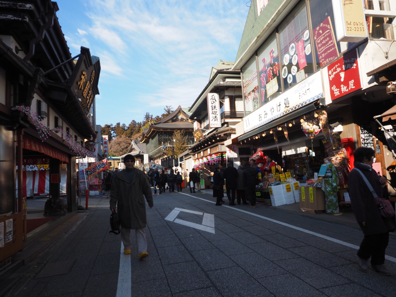 成田山に毎年初詣に行きますが、新勝寺に行く途中の参道には、成田名物の羊羹や落花生や漬物を売るお店や、名物料理のうなぎ屋さんなど、いろんなお店が軒を連ねて賑わっています。参拝の帰りには店先をひやかしながら散策するのも楽しいですよ。