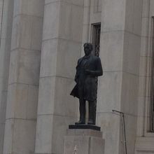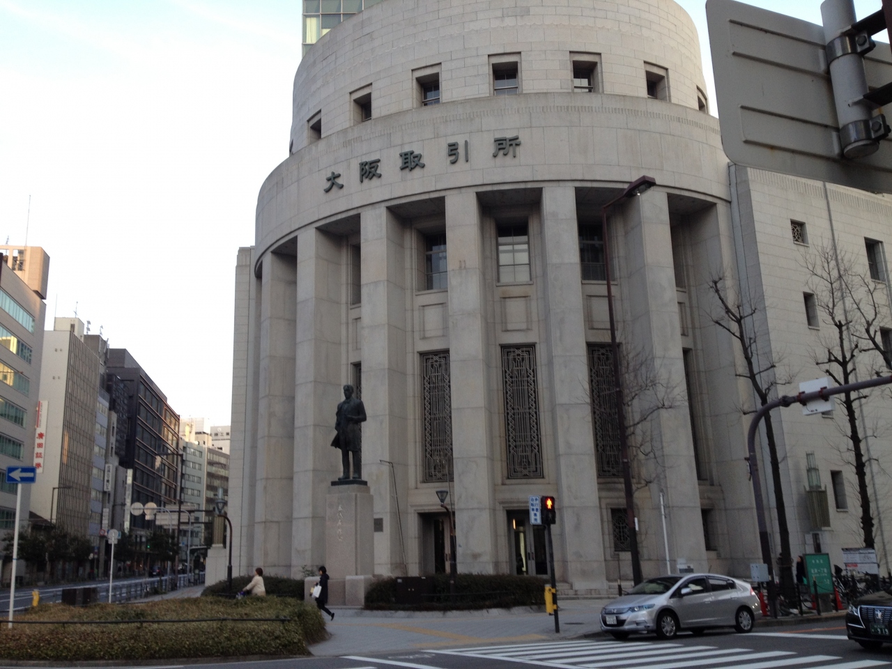 NHK朝ドラにてイケメン俳優が演じ、聖地巡礼のごとく、今も撮影にに訪れる人が後を絶たないようです。大阪商工会議所など、大阪の経済関係の建物には必ず銅像やら写真やらがあるほど。中でも一番有名な大阪証券取引所にあるこの像は京阪北浜下車、取引所前にいくとすぐわかるほど、今も大阪を見守ってくれているかのようにドンと北西を向いて立っておられました。