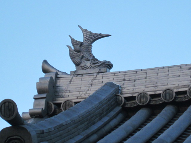 山門屋根のシャチの装飾と、本堂前の棕櫚が素晴らしかったです