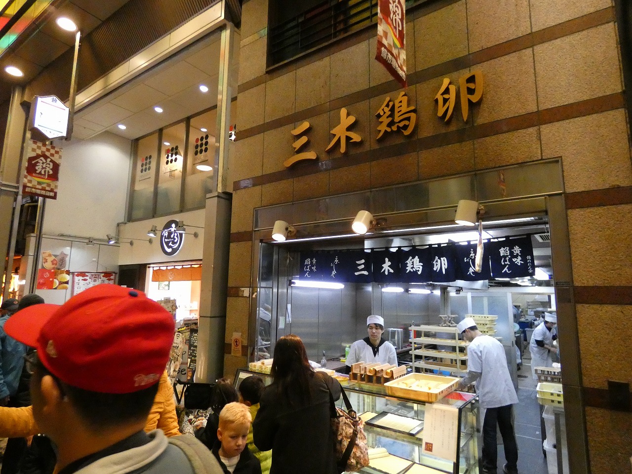 京都の錦市場にある鶏卵の店です。ここでは大きな出し巻き玉子を焼いています。1本1100円と、いい値がしますが、だしの味が利いていて美味しいです。子供も大喜びでかぶりついていました。ただ、せっかくなら、焼きたてのアツアツが食べたかったです。