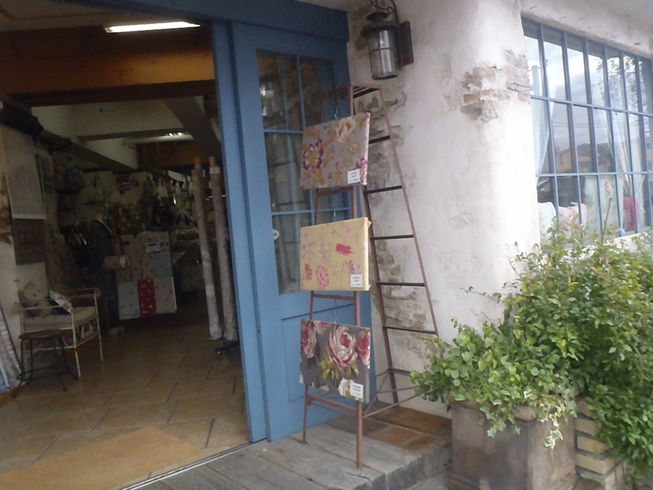 白壁にスカイブルーの屋根のあるナチュラル感あふれる外装のビル店舗で、建物横の洋風の庭があり、一階から三階までの売り場には手作りの手芸材料ならなんでも揃う手芸好きには一度は訪れてみたいお勧めの手芸店です。
