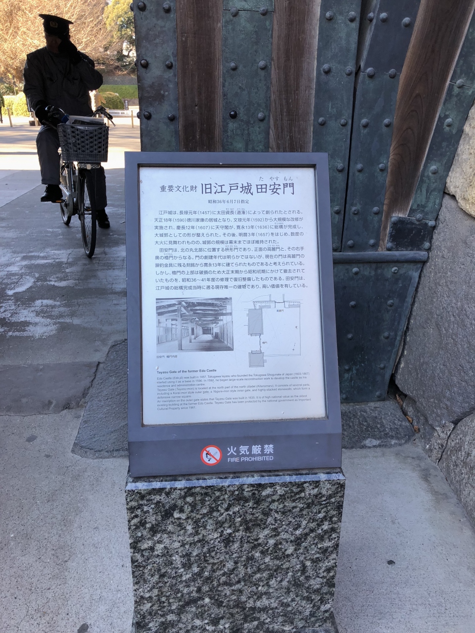 門のそばには、田安門についての説明の看板もあるので歴史が分かります。