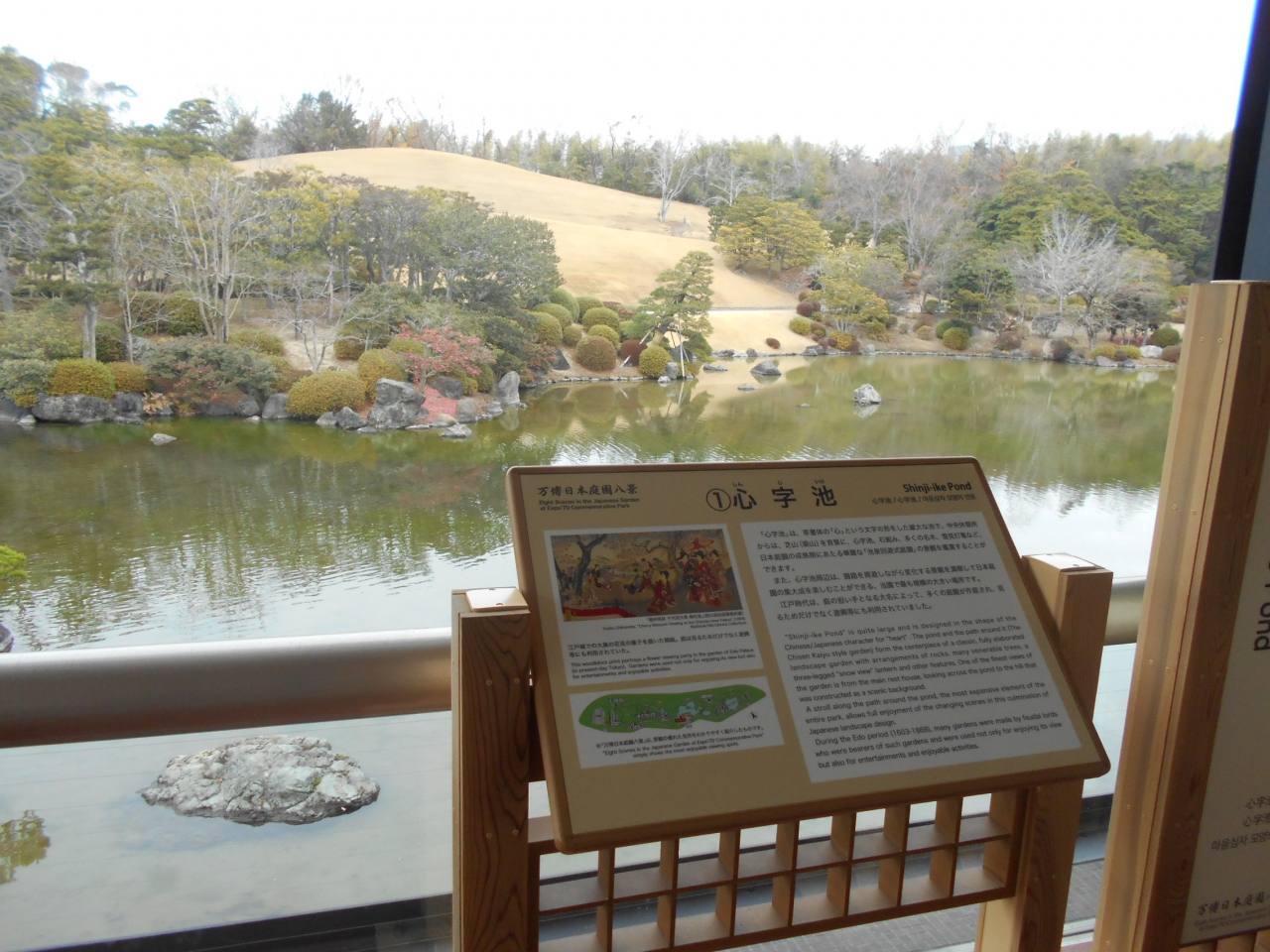 しかし、ここは、大阪万博でつくられたという大観客に見せる日本庭園なので、「心字池」だけとっても広大で、日本庭園という概念を超えた庭園だ。