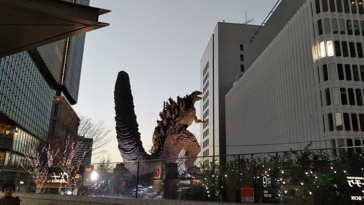 昔はホントに小さい像でした。日比谷シャンテ前の広場が整備され、目立つ所にそれなりの大きさで再度出現。尻尾の長いシン・ゴジラです。