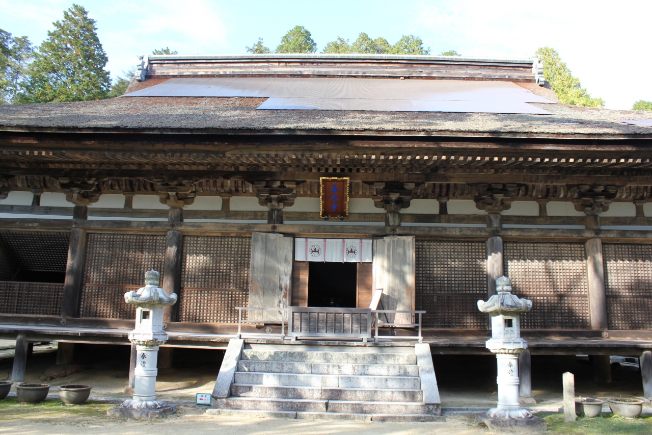 善水寺は710年頃に元明天皇の勅願により創建された天台宗のお寺で、国宝に指定されている本堂は1364年の再建で、入母屋造りの檜皮葺の大きく立派なお堂でした。