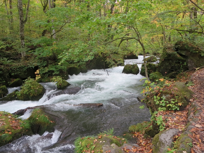 川の中に苔むした小さな島がたくさんあり、そこを白いしぶきをあげている渓流は、本当に美しく、自然が作り出した日本庭園の原点のように感じました。渓流は阿修羅の流れにつながり、一番美しい場所だったように思います。